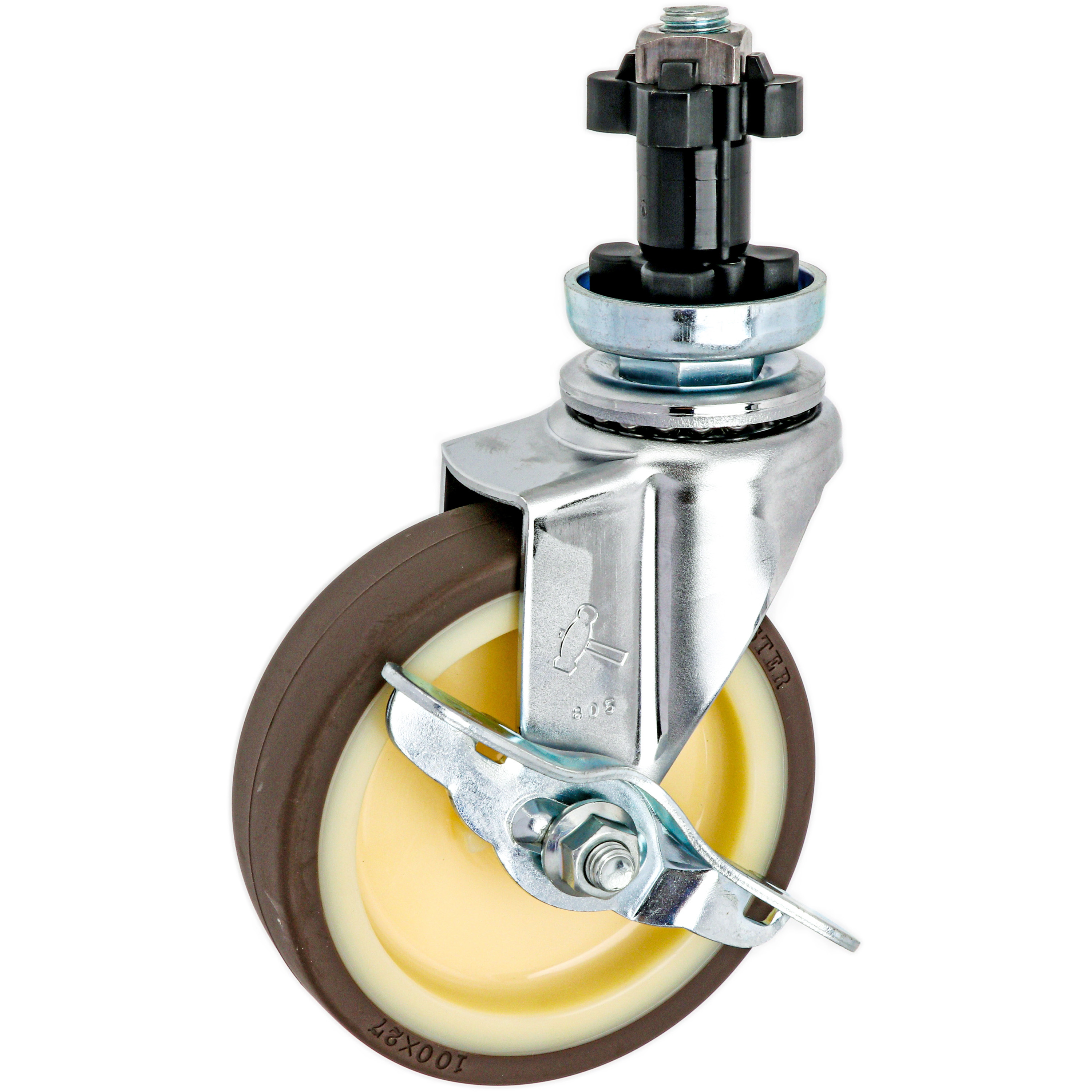 설치하는 본체에 바퀴의 돌기 부분을 나사처럼 조여 넣는 형태로 사용하는 타입이에요. 플레이트보다 설치면이 작아도 설치가 가능하고, 나사 구멍 직경의 종류도 다양해요.